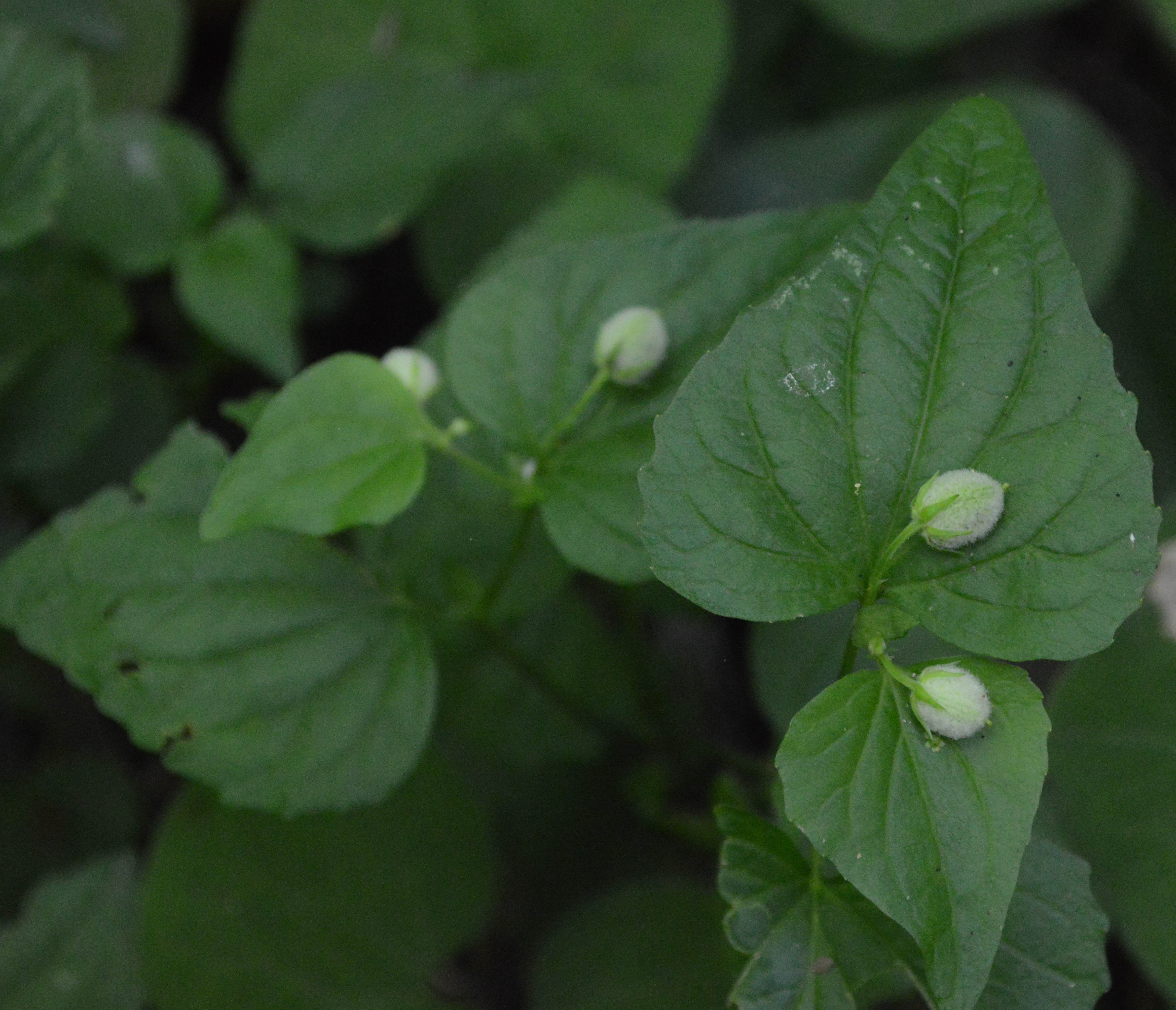 I post this with some trepidation, as I’m not sure that I got the species right. For sure it is a Galium of some sort. If you’re walking along in the shady woods and see little clouds of white dots seeming to float a foot or two above the ground, you’re probably looking at a bedstraw. This one has unusually tiny leaves. The flowers are about a sixteenth of an inch across.