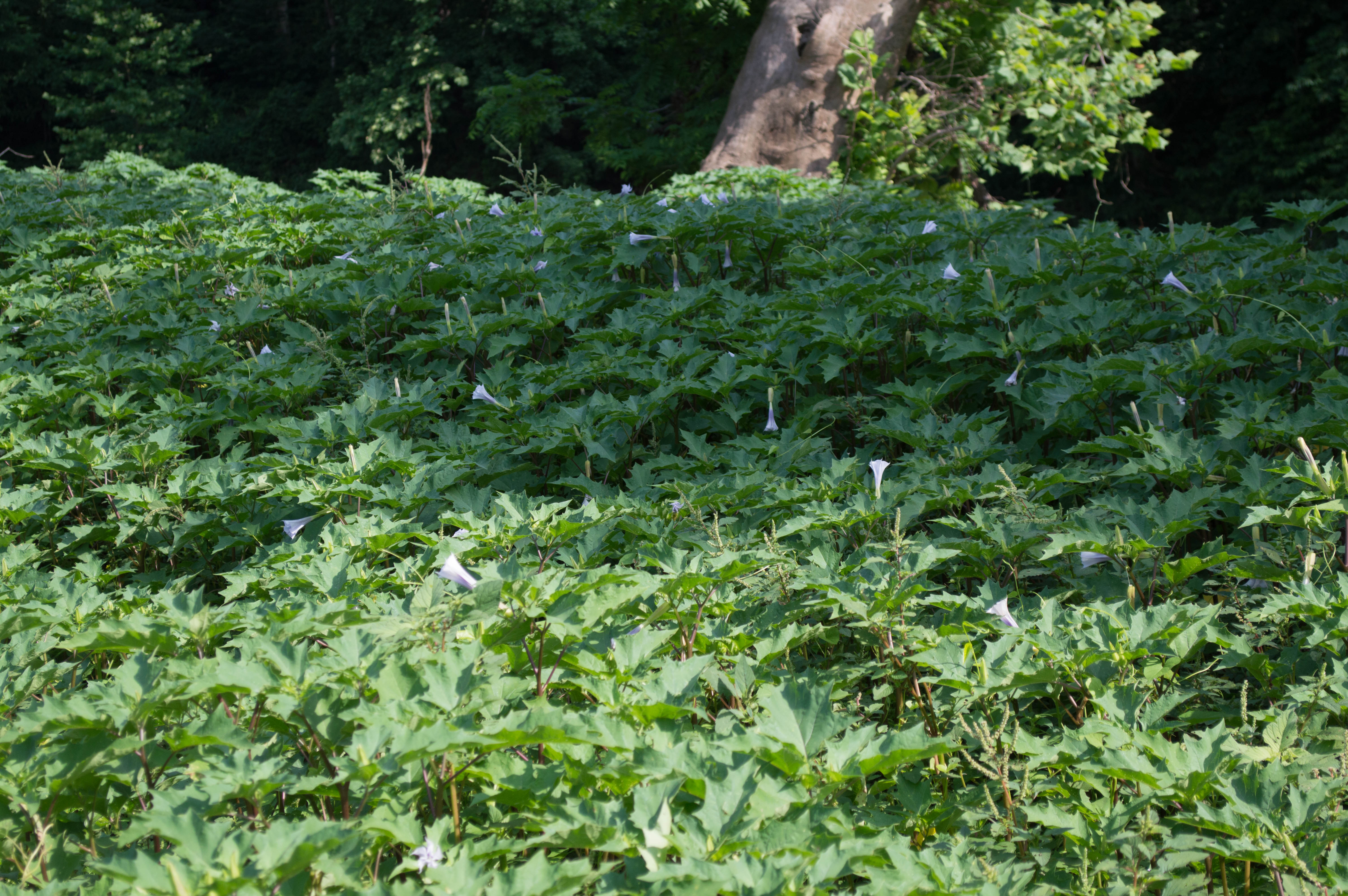 A species of Datura (jimsonweed), a highly invasive alien, outcompeting almost everything on a long swath of riverbank
