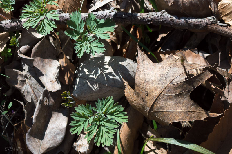 squirrel corn or Dutchman’s breeches, too soon to say (Dicentra species)