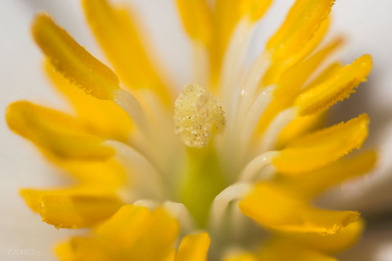 harbinger of spring; a favorite patch is now covered by a downed tree that took some vines with it. The flowers are visible but inaccessible for close inspection (Erigenia bulbosa)