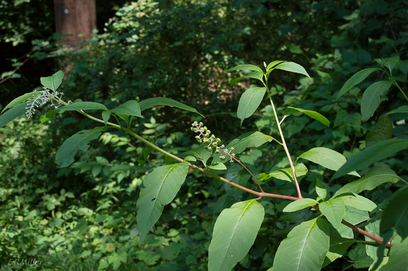 Pokeweed can found in most of the US, except parts of the mountain West and upper Midwest.  It’s an herbaceous perennial growing to 8 feet tall. Although native, it’s listed as weedy or invasive by several authorities.