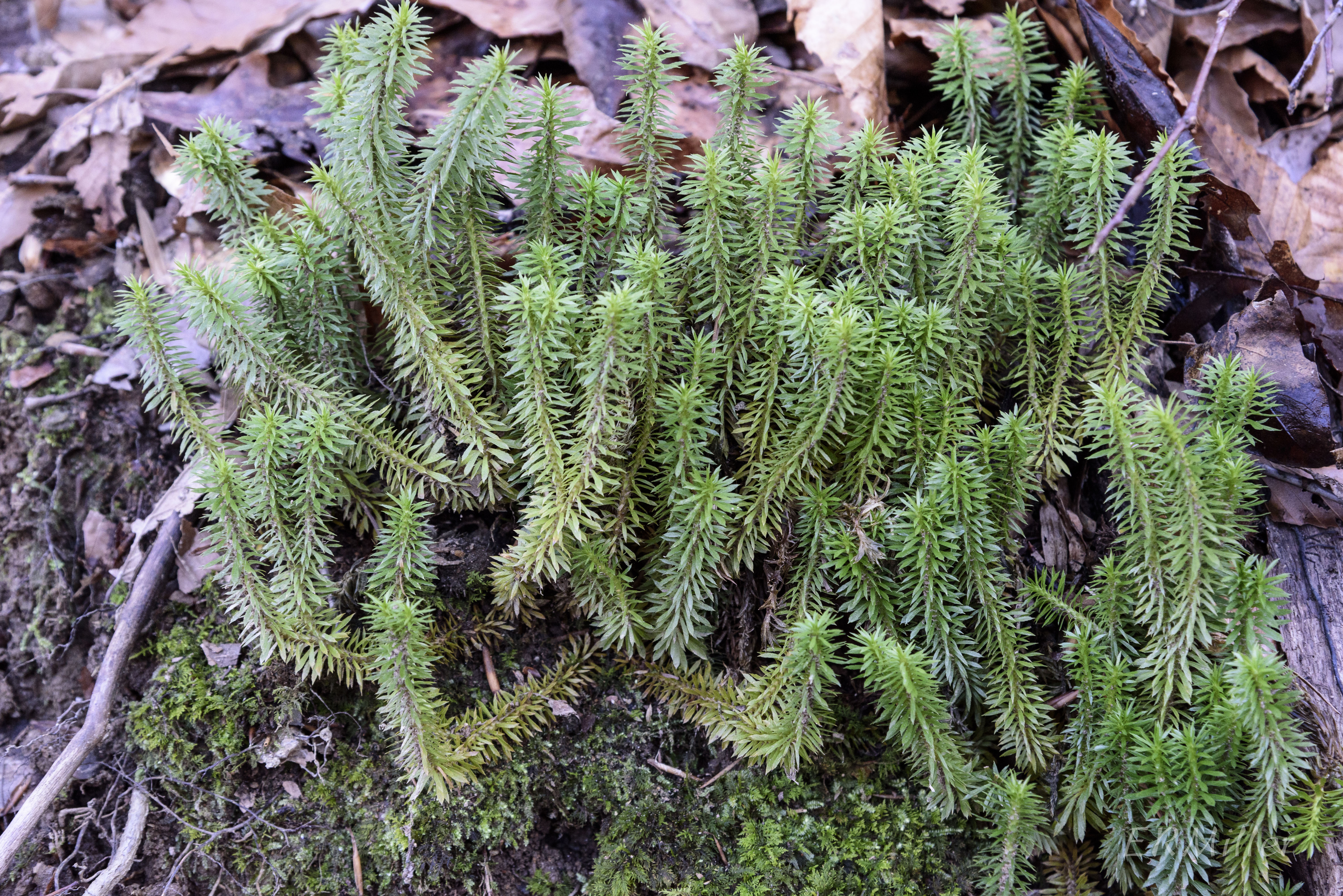 Commonly known as ground pine, or princess pine, or clubmoss, it isn’t a pine, nor a moss. Vaguely related to ferns (in that they reproduce via spores rather than seeds), these primitive plants are covered in simple, single-veined, needle-like leaves. A plant consists of an underground stem with vertical shoots that seldom exceed twelve inches tall.