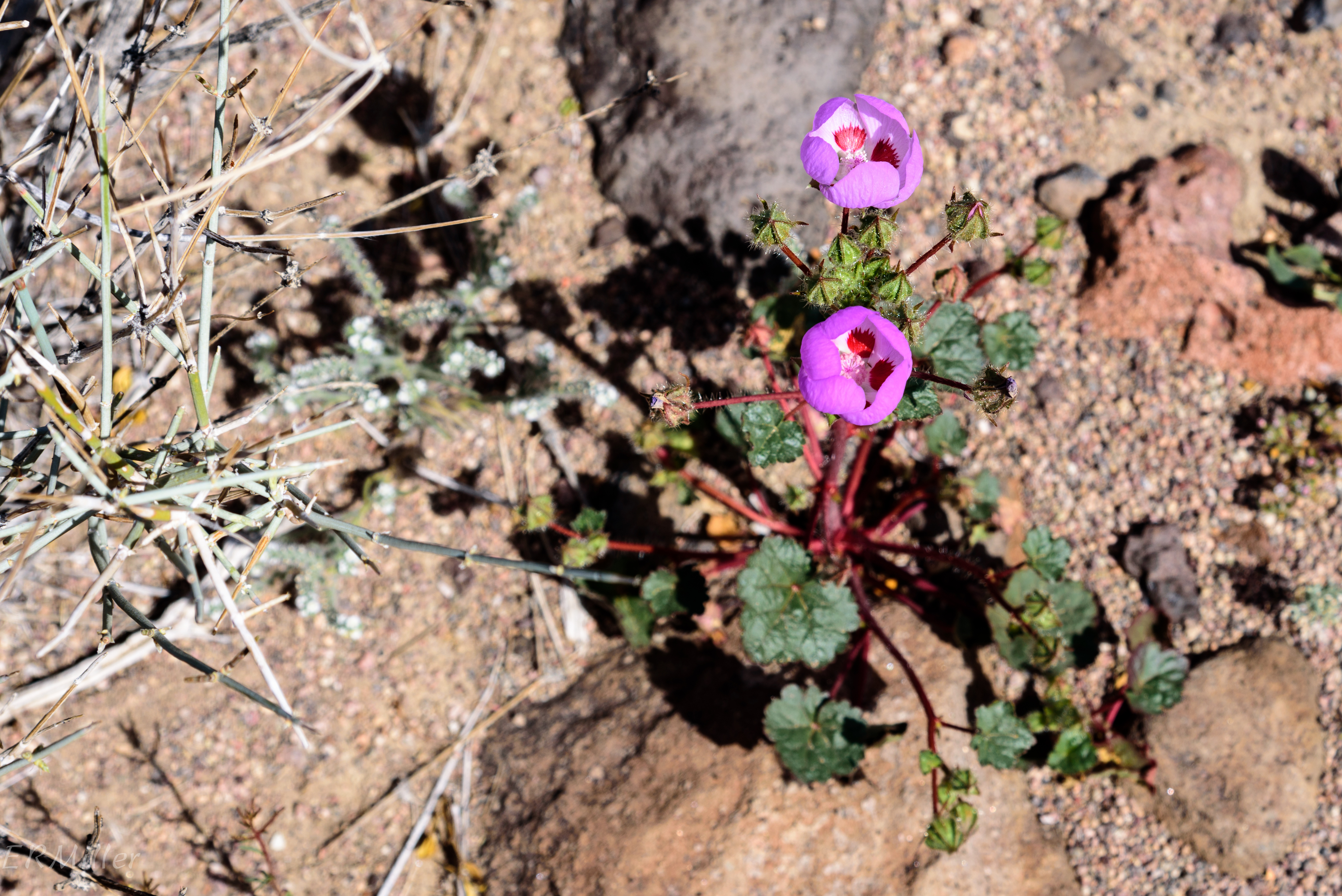 Desert fivespot is no less spectacular for being rather common. It’s an annual that can stand up to two feet tall, and is found in lower elevations in Death Valley. The flowers close at night and re-open the next day.