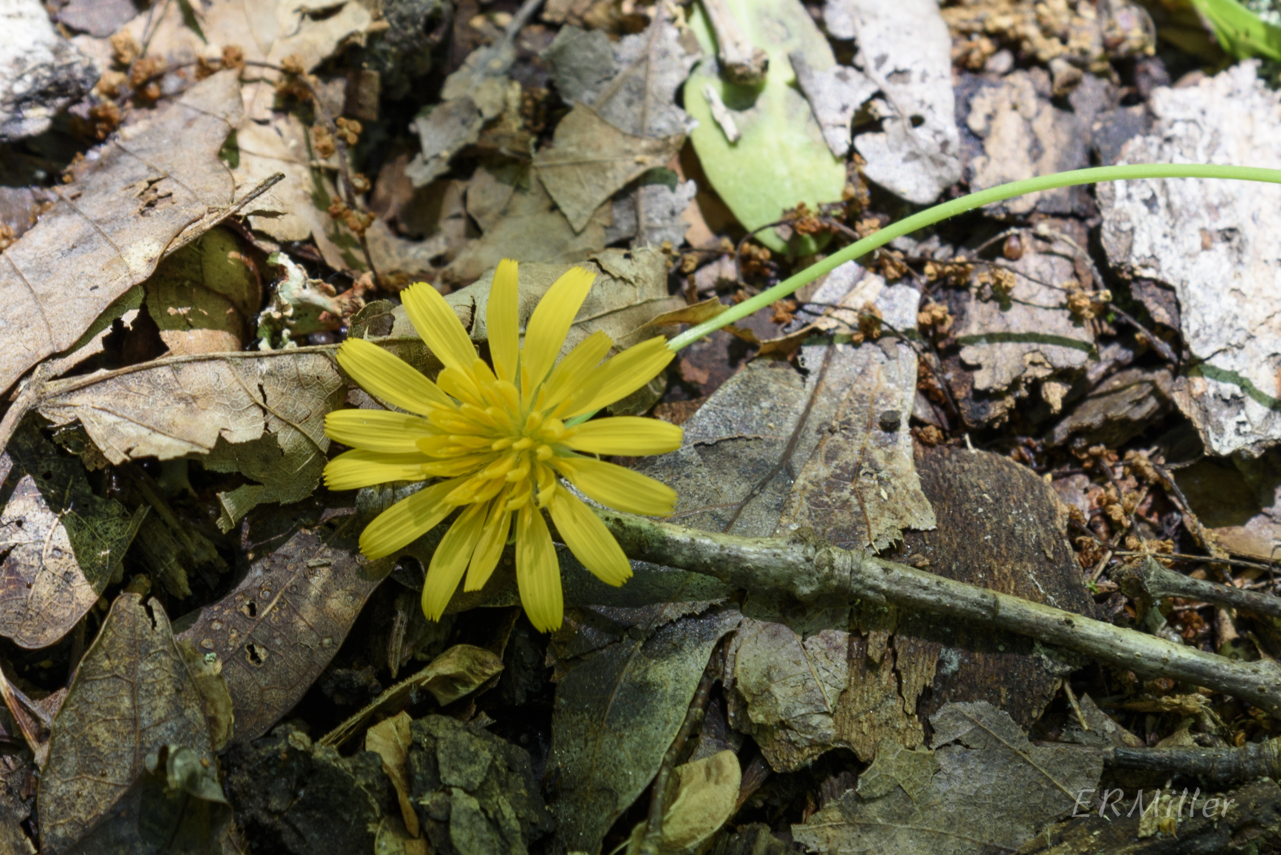 Next clue: “ovoid tubers”. Here’s a bit of info that I just can’t get. First, these plants are on National Parks land, where digging is forbidden (and rightly so). And second, K. dandelion is an endangered species in Maryland, ranked S1 (“typically 5 or fewer estimated occurrences or very few remaining individuals or acres in the State”). Even if it were legal, there’s no way I would dig up an S1/endangered plant! But seeing the roots would certainly solve the mystery.