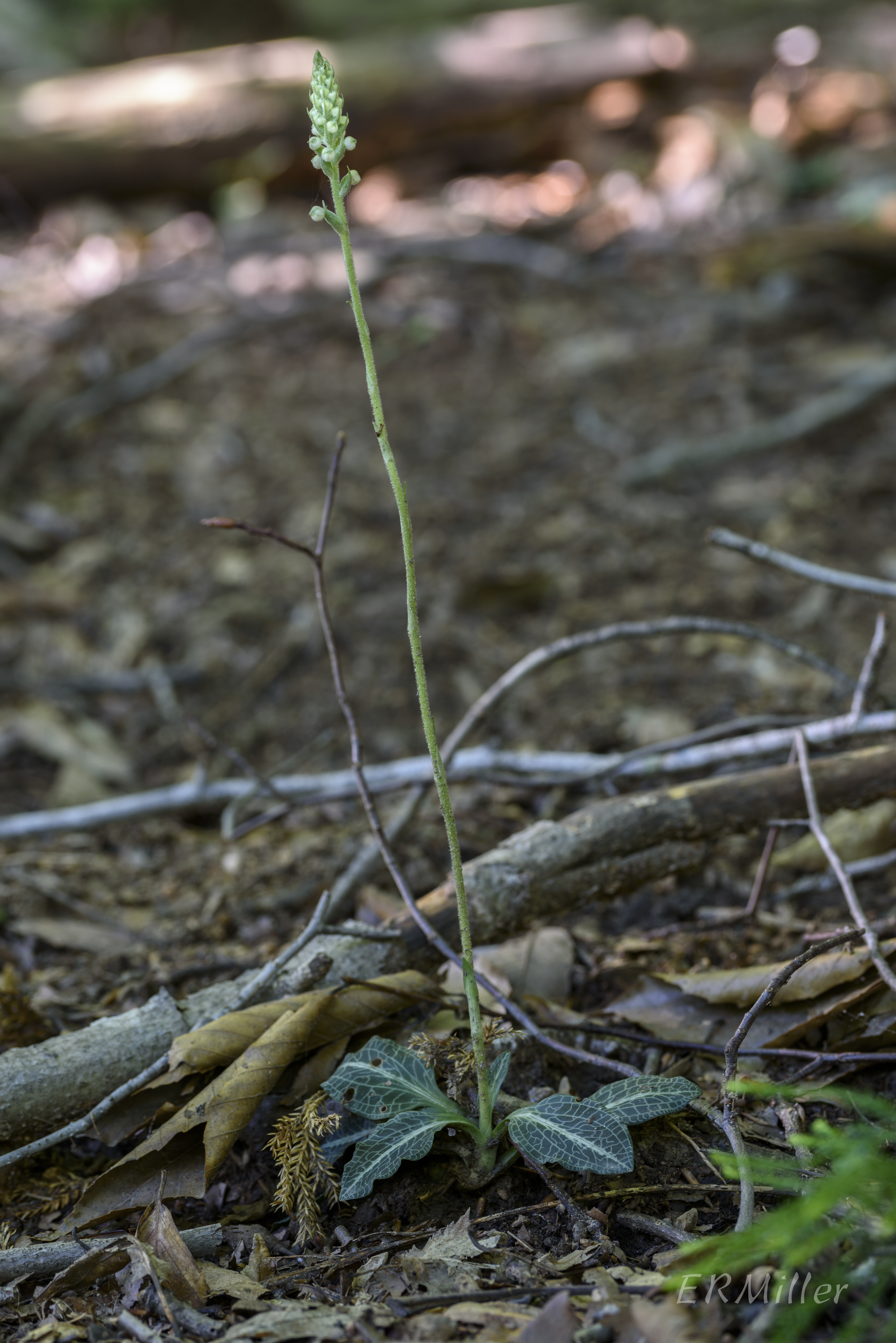 Well I’ll be danged! Maybe Goodyera pubescens? The reason I’m so surprised is that I generally don’t find plants I’ve never seen before on my first try at Google. :o)