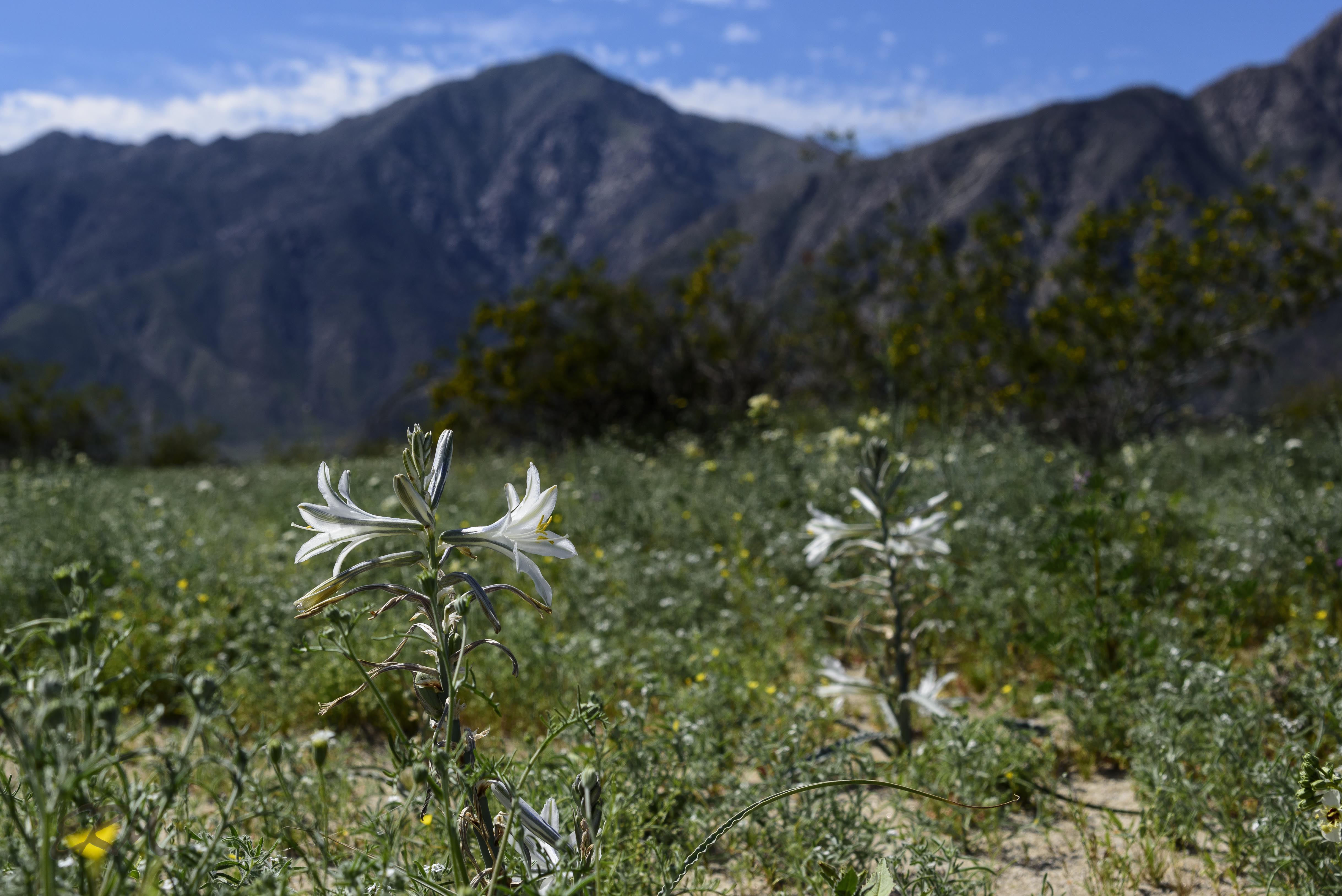 • I saw desert lily blooming on Wednesday and Thursday on Big Horn Road and a few other places. On Friday morning there were a few on the Coyote Canyon Road. I left the area Friday so that’s my most recent info. Are you there?