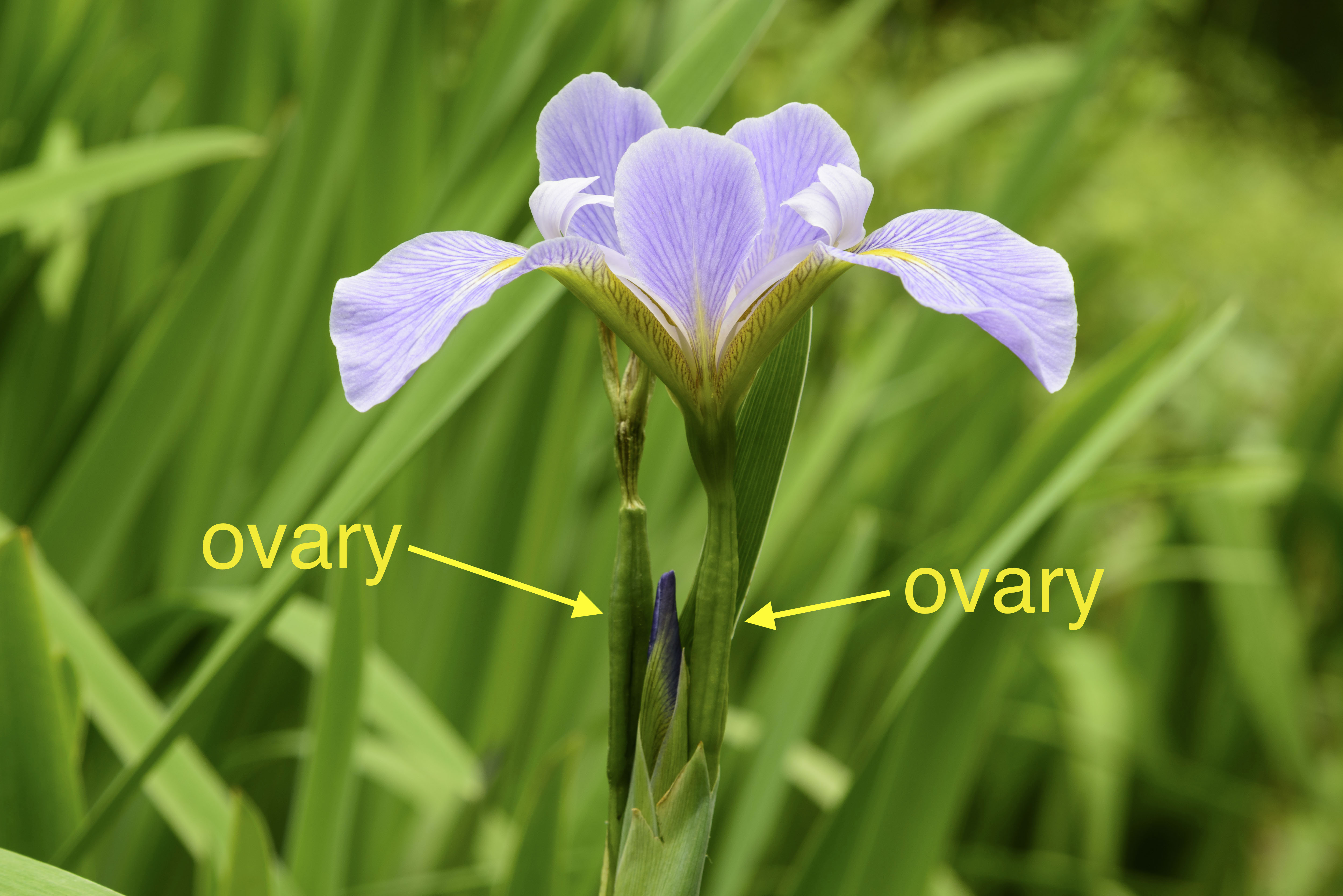 I sampled six plants at each of the two sites. Stand #1 is situated in a vernal pond, currently without standing water, with a tree canopy providing plenty of shade. Although there are a lot of irises in the stand, only six were blooming; these were all in the relatively sunnier part of the stand. The irises form a near monoculture, surrounded by a near monoculture of lizard’s tail (Saururus cernuus).
