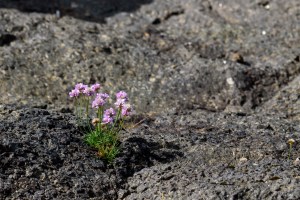 In the Faroes land is considered to be either “infield” or “outfield”, these being, respectively, the fenced-in areas around villages and the land further away where sheep range free. Wildflowers in the outfields tend to be very small, often hidden in rocky places that are protected from browse. The larger flowering plants I saw were in areas inaccessible to sheep (and humans), for example sea thrift on rocky outcrops with no other vegetation nearby.