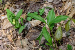 perfoliate bellwort and Solomon’s plume next to each other; note how different the stems look (click to enlarge)