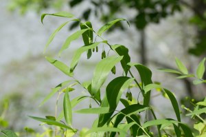 I love that I found these two growing right by each other, but be warned, this P. biflorum is atypical: the leaves are exceptionally narrow. Note that there’s one flower bud dangling from a leaf axil. Also, check out the leaf tips (click on the picture to zoom in), because they’re textbook examples. P. biflorum’s is acute, and M. racemosum‘s is caudate.