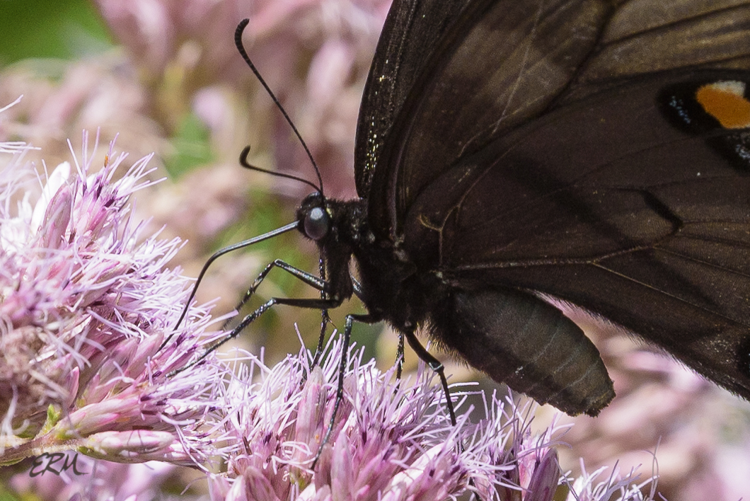 The dark winged butterfly that I had been shooting on joe-pye weeds [see previous post] was a dark morph eastern tiger swallowtail (Papilio glaucus). The dark morphs are always females.