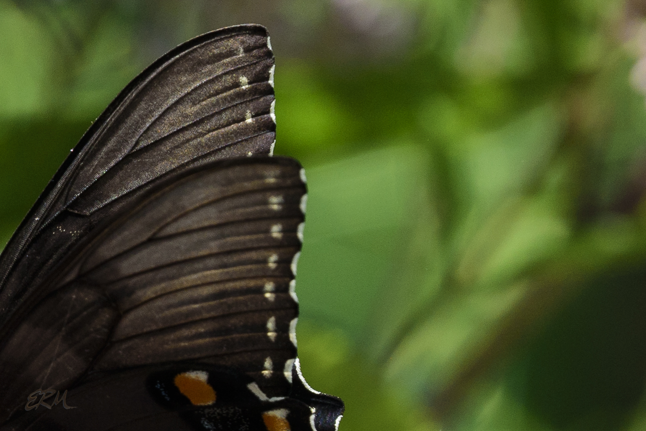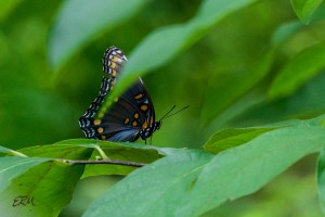 It wasn’t until the next day, while I was shooting yet another species of butterfly (subject of a future post), that I saw what I thought was a spicebush swallowtail (Papilio troilus). I didn’t even realize at the time that’s what it was, because I was so focused on the other one that I didn’t stop to think that this particular butterfly was actually resting on a spicebush.