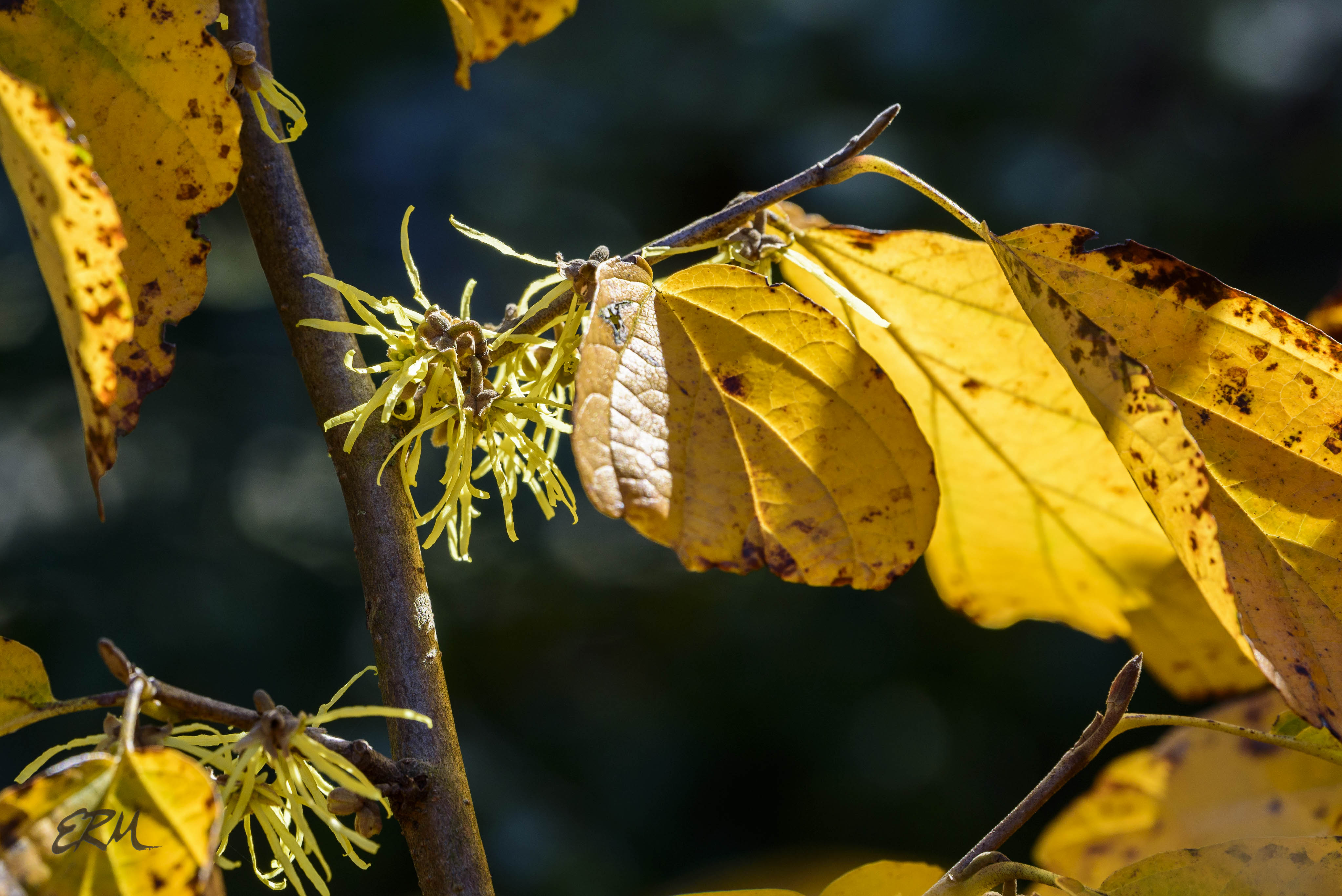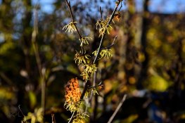 But one thing does bloom well into this month: witch-hazel, Hamamelis virginiana. The one pictured here is in my garden, but you can find witch-hazel almost everywhere in Maryland, not to mention almost every county in the mid-Atlantic and New England regions. It’s also present in parts of the South and Mid-West.