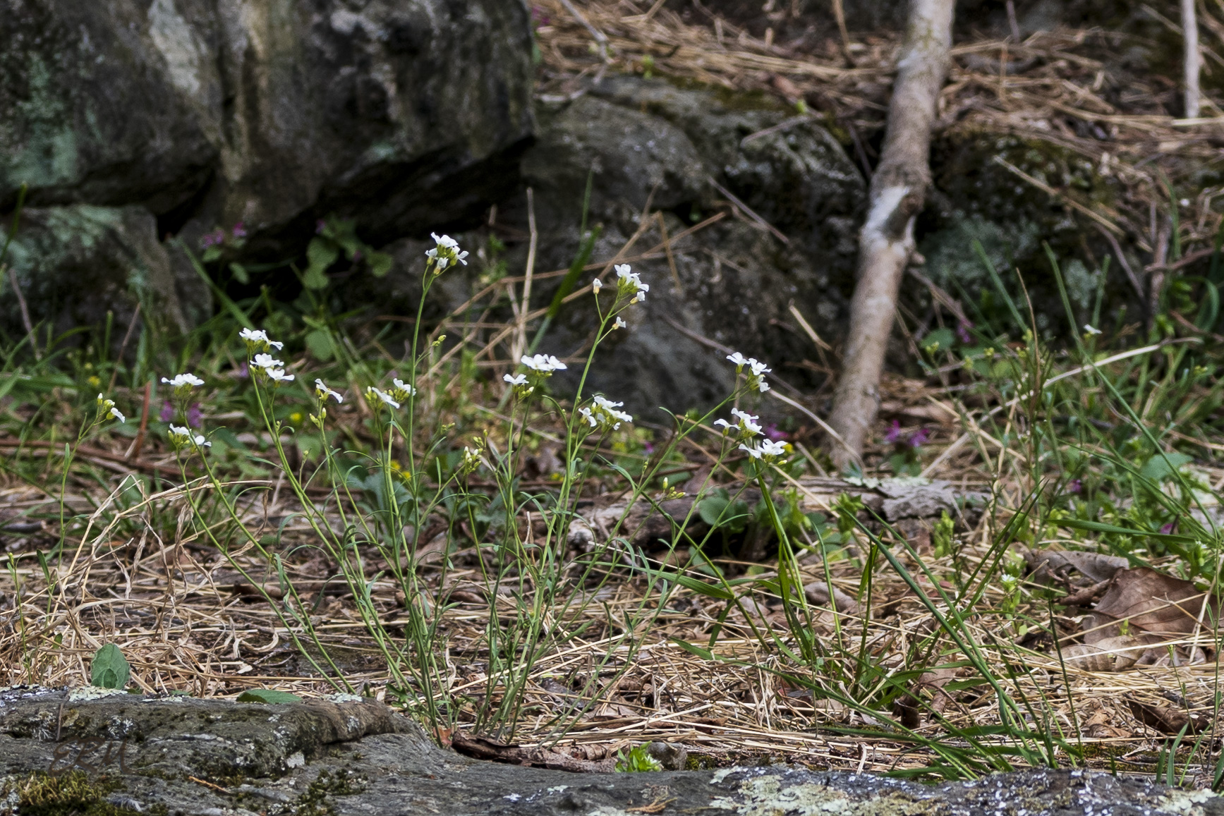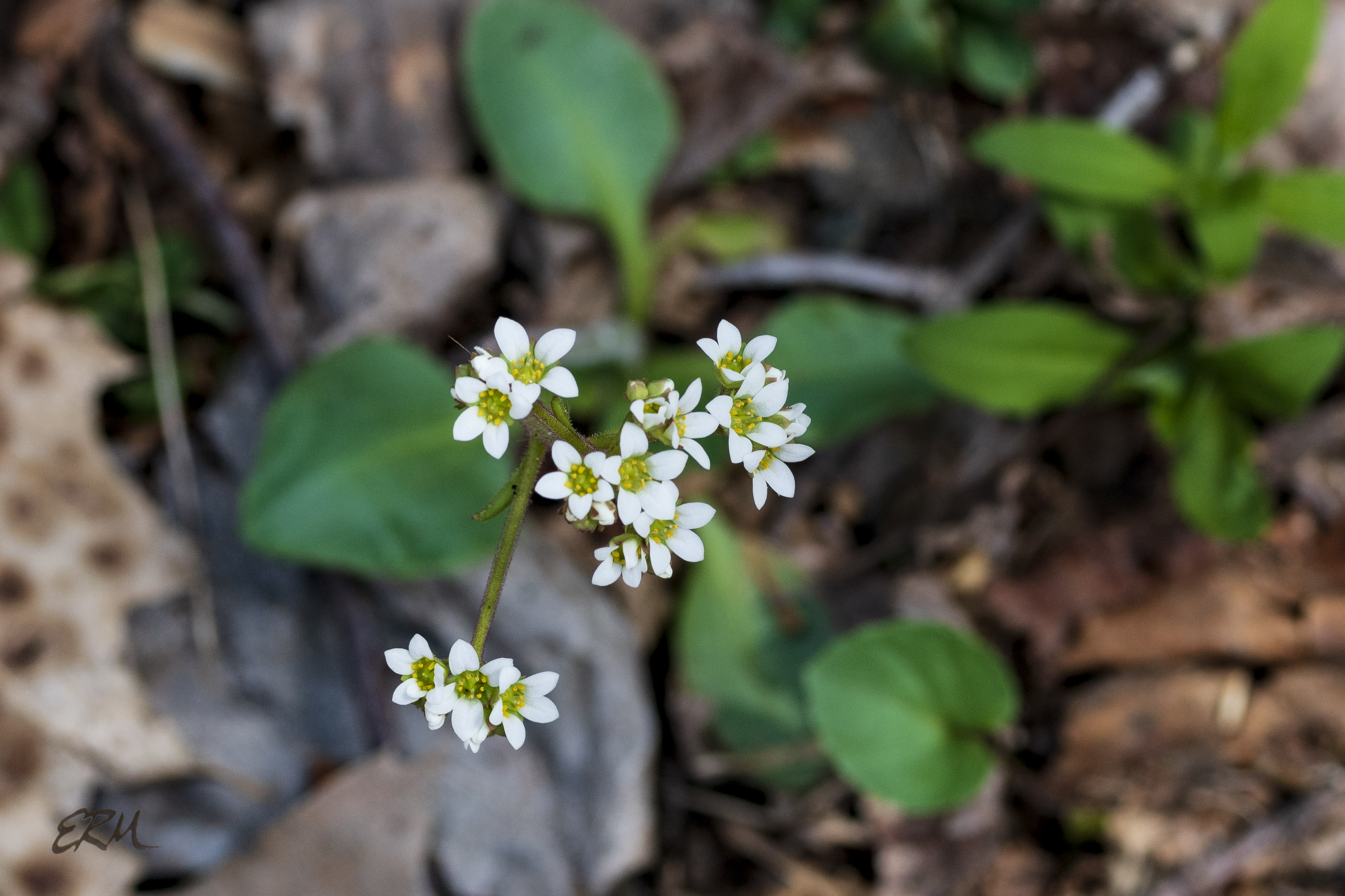 one very early sessile bellwort (Uvularia sessilifolia; Liliaceae); watch for more in the next week or so in the gorge, maybe a week after that further north and west in the piedmont