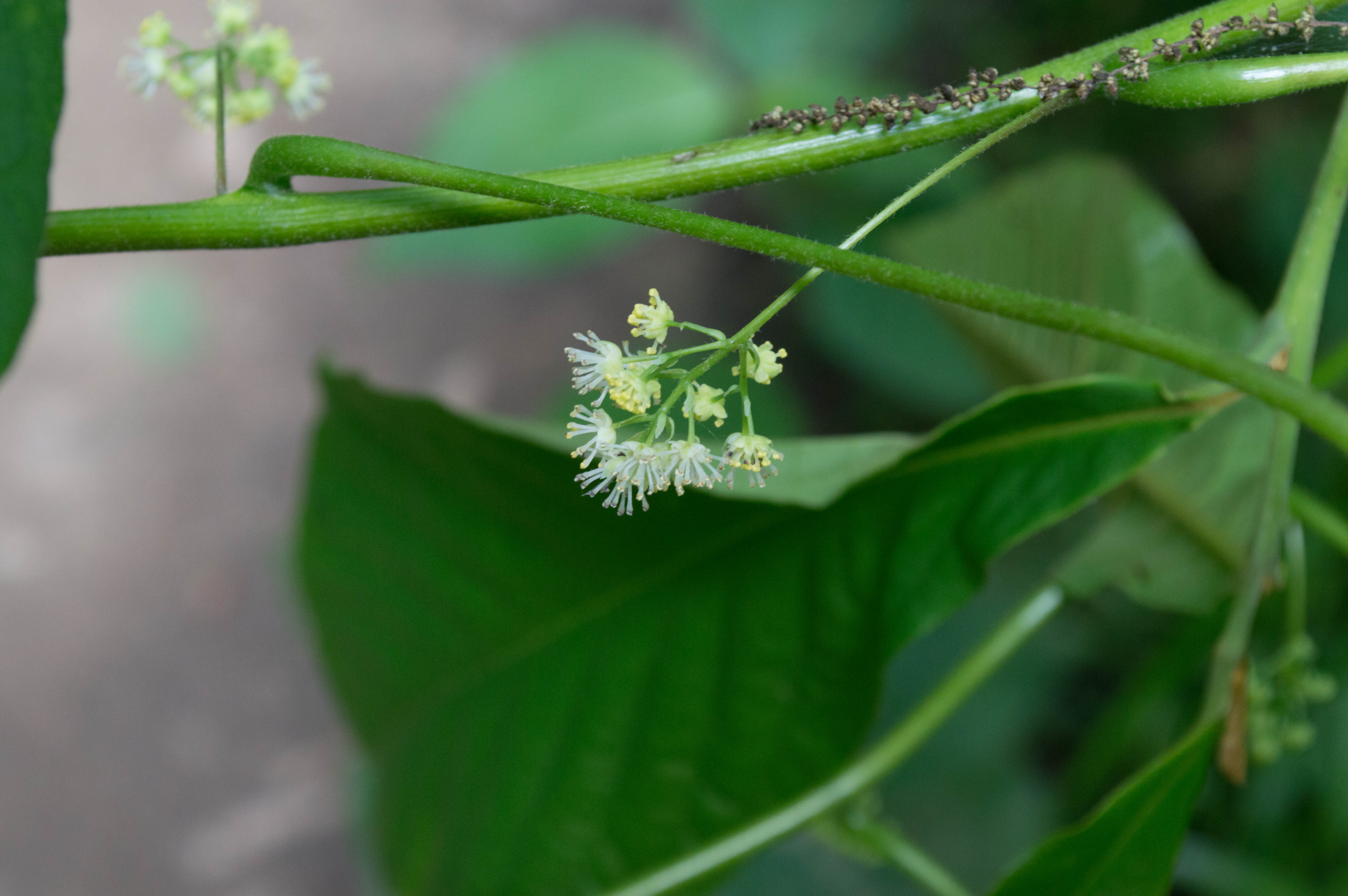 Menispermum canadense Common Names moonseed, yellow parilla Family Menispermaceae Habitat moist woodlands Observed Blooming early June 2014 Conservation no issues Share this: Click to share on X (Opens in new window) X Click to share on Facebook (Opens in new window) Facebook Click to email a link to a friend (Opens in new window) Email Like Loading...