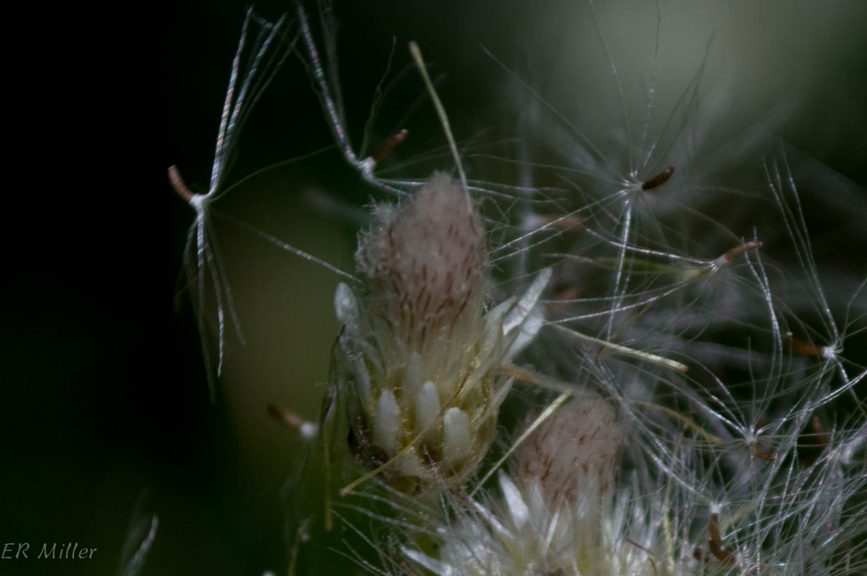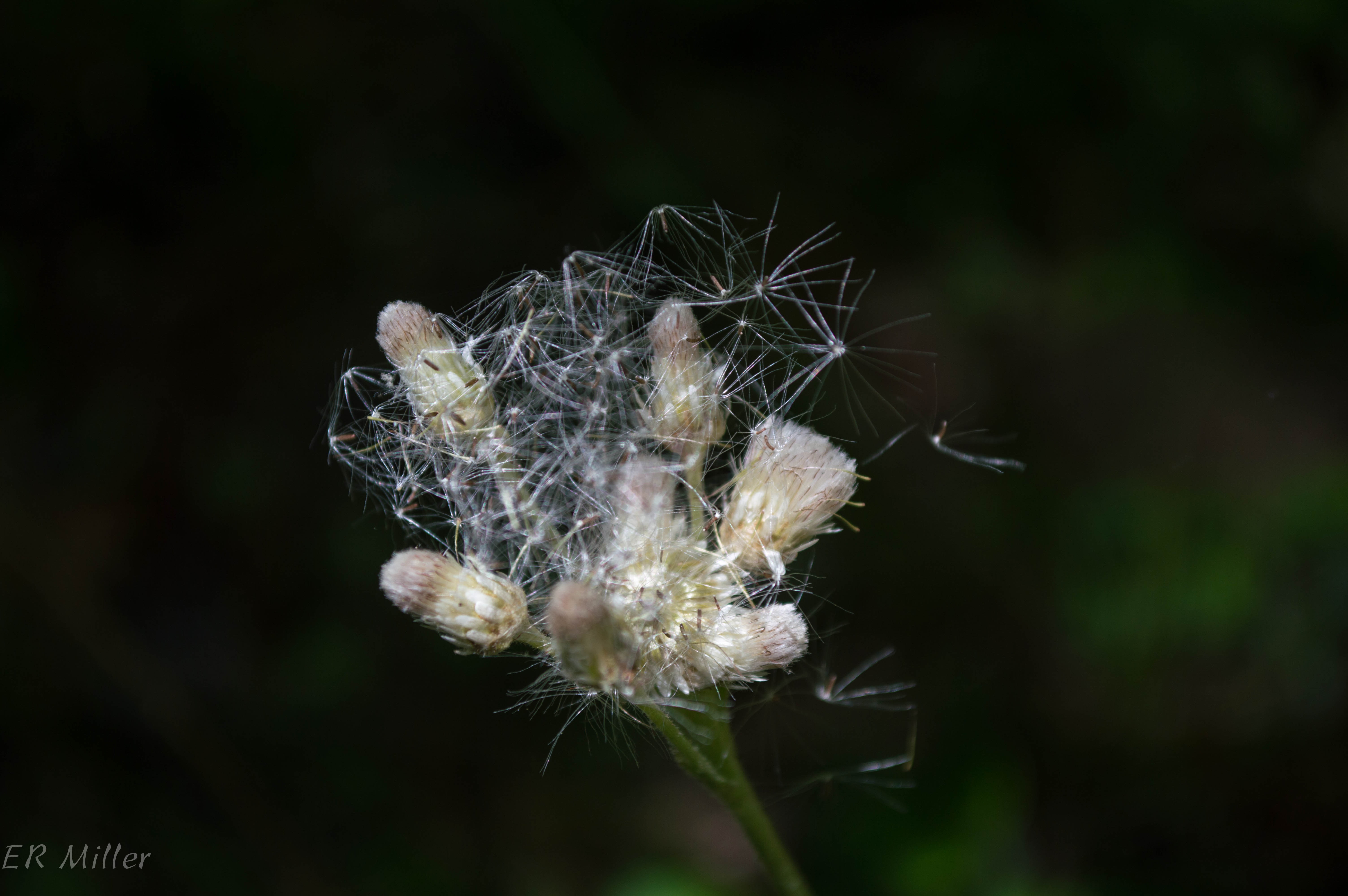 This plant is found throughout the Maryland piedmont. White disk florets only, surrounded by green phyllaries. Look at those little seeds!