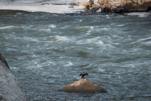 Oh and here’s a double-crested cormorant (Phalacrocorax auritus) drying its wings in the middle of the Potomac.