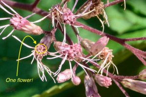 Now that we’re into October one of the white-flowering aster family plants I wanted to write about (late-flowering thoroughwort or late boneset) is just about done blooming, but the other one (white snakeroot) is going strong still.