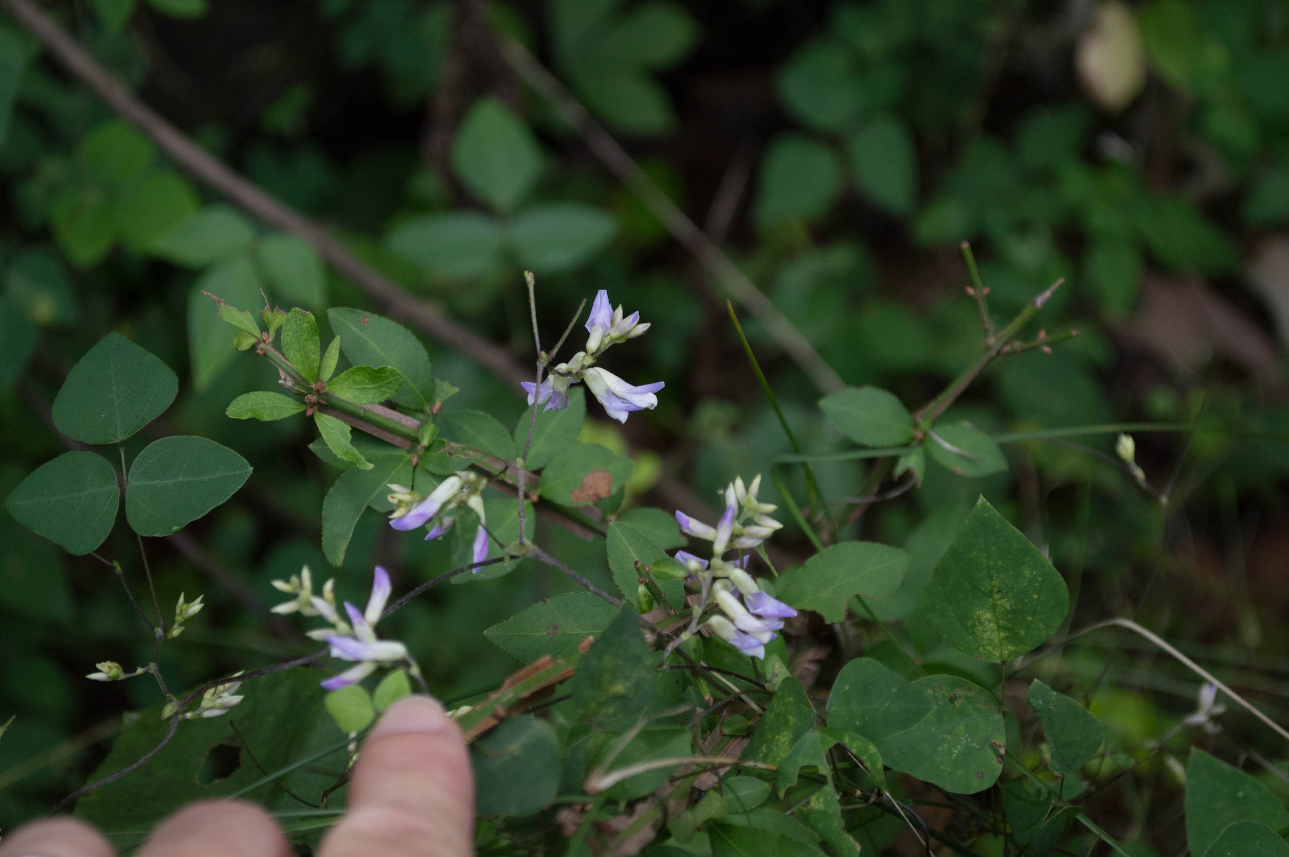 Amphicarpaea bracteata (hog-peanut) is a shortish vine that stays low, twining through other plants, blooming in late August.