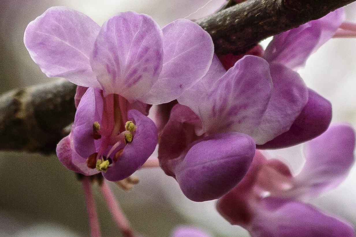 By my observations, the earliest blooming fab in the Maryland piedmont is the redbud (Cercis canadensis), a lovely understory tree that usually starts flowering in May, about the time the dogwoods are finished. It’s a nice addition to a native landscape garden except for one thing: it fruits profusely. The pods are easily raked up with autumn leaves, but invariably some will escape your attention and the following spring you’ll be pulling redbud seedlings out of your garden. (Ask me how I know.) Also, it can grow lanky and the wood is somewhat weak. The tree (and therefore your garden) benefits from thoughtful pruning.