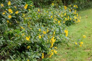 Here’s another big yellow astery thing: cut-leaved coneflower (Rudbeckia laciniata). The leaves make for easy field ID, but be sure to look at the whole plant; upper leaves are often much simpler in shape.