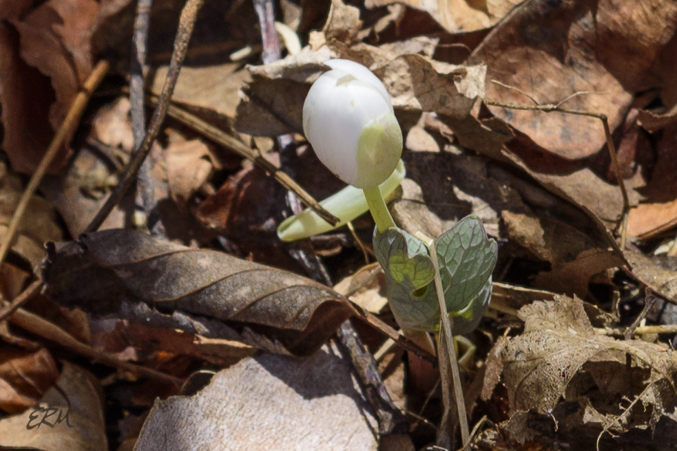 Look for twinleaf (Jeffersonia diphylla; Berberidaceae) on rocky slopes along Billy Goat B; it will likely be done blooming by tomorrow.