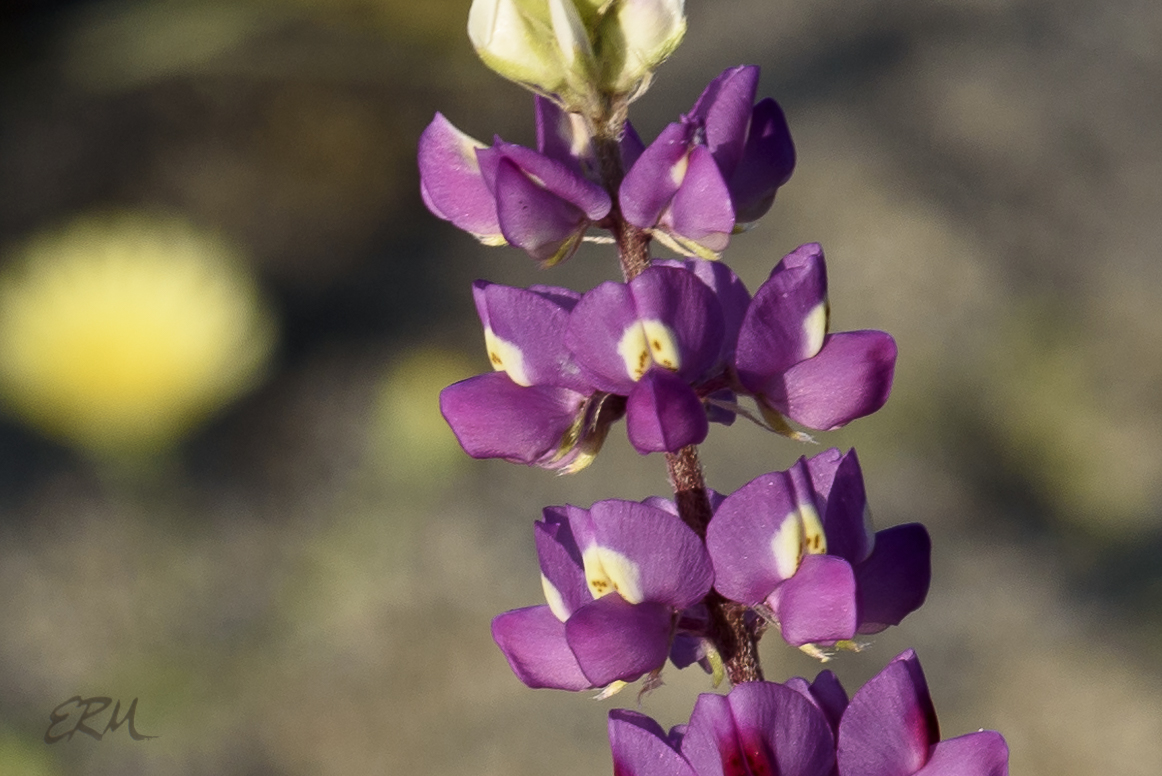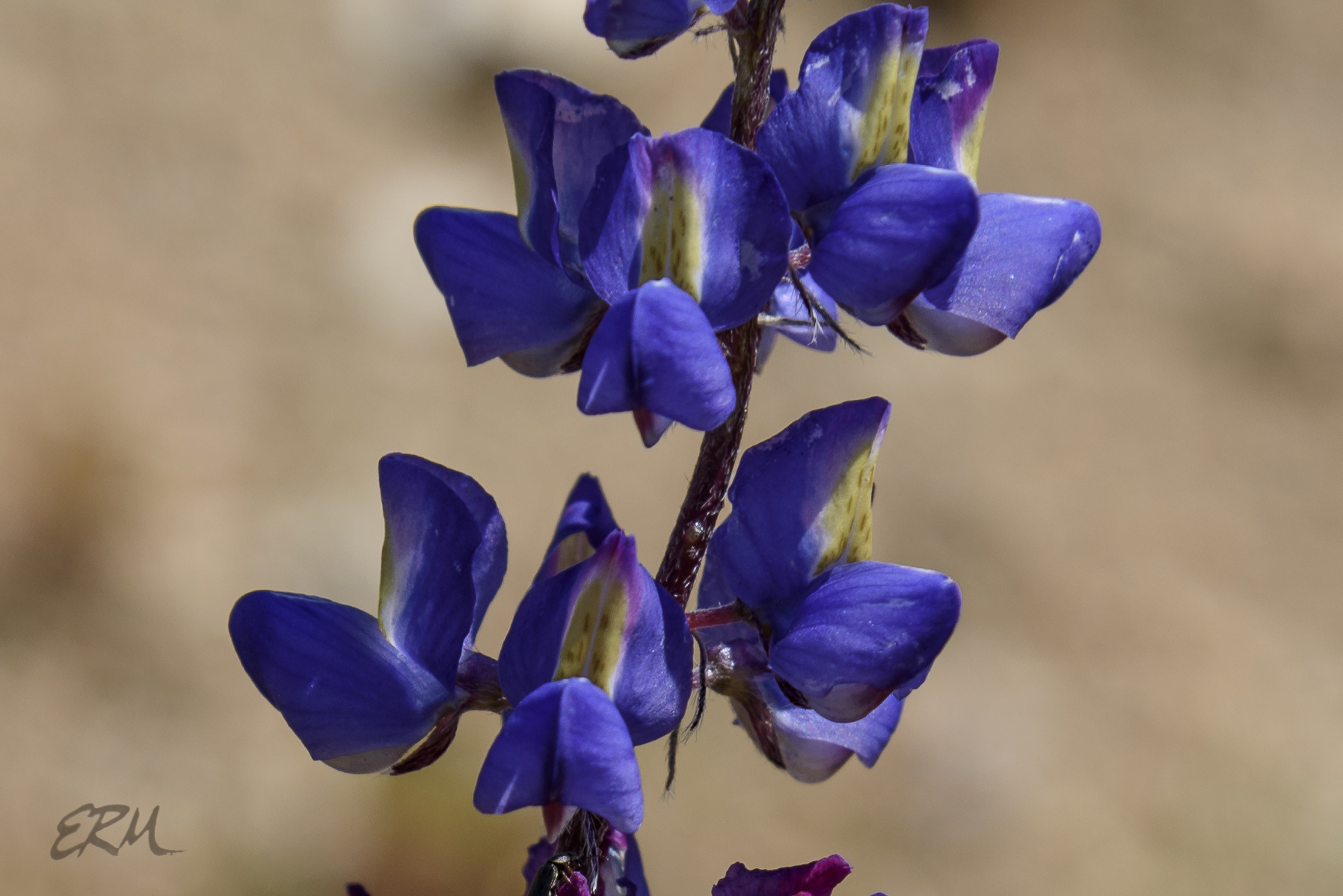 L. arizonicus is native to the Sonoran and Mojave deserts. It’s a desert ephemeral, growing only in years when there’s been enough rain, and reaching to about a foot and a half tall, Depending on which authority you consult there are several subspecies; interestingly, several of the subspecies have their own varieties, for example Lupinus arizonicus ssp. arizonicus var. arizonicus and Lupinus arizonicus ssp. arizonicus var. barbatulus. I have no idea which one is pictured here.