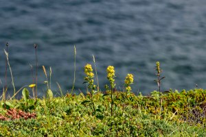 On the third evening first one and then another photographer joined me in the grass on the little hillock. They were both disappointed that the birds were far away on their islet. I advised them to be patient, wait for most of the people to leave, then get ready. Once again I got the remaining peoples’ attention, got them to be still and silent, and once again the puffins came and perched on the ledge.