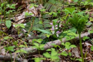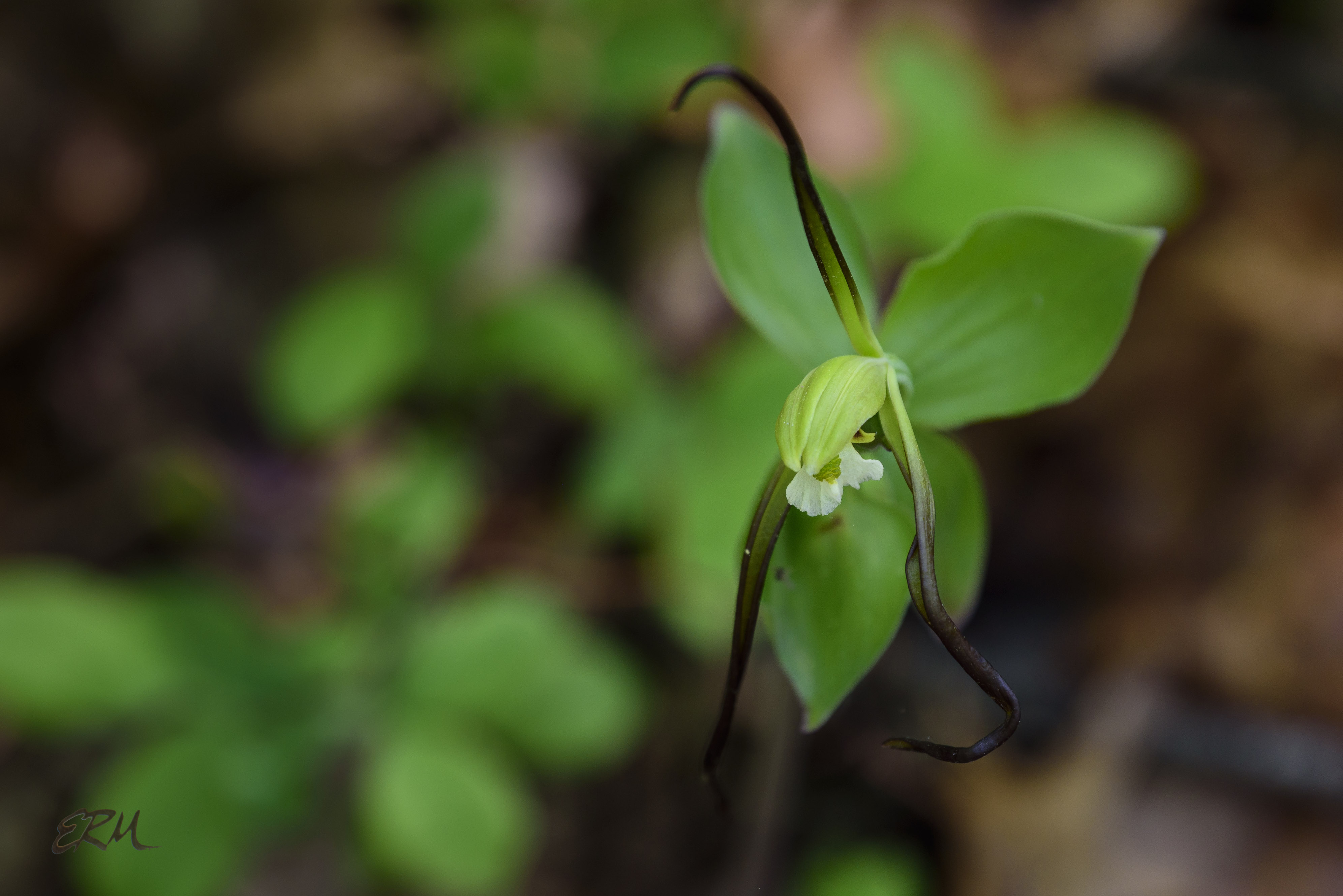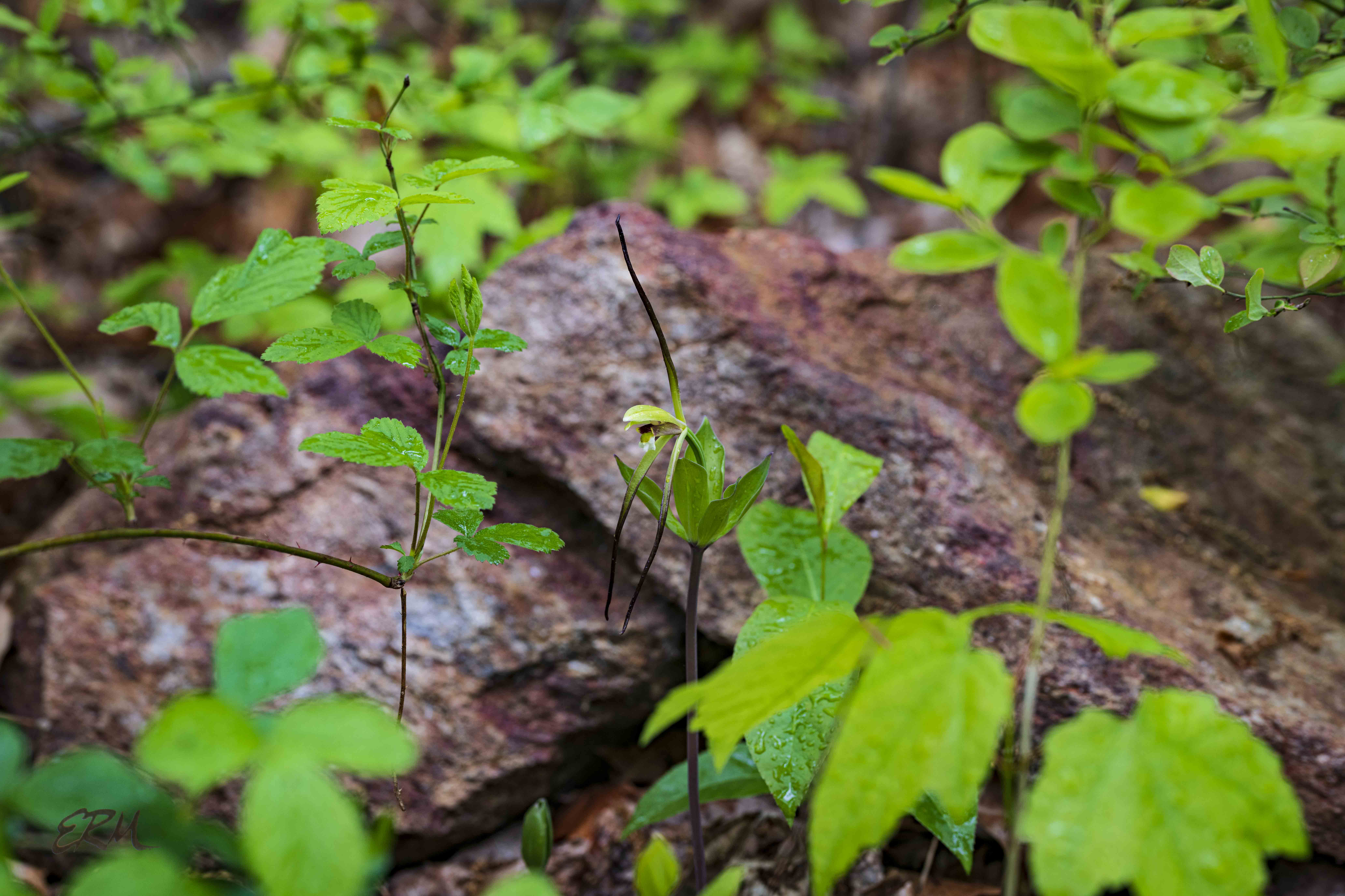 Friday morning, 8 May 2020: cool weather, overcast, rain threatening. In a little while I’m supposed to go on a hunt with some on-line friends who I’ve never met in person. Our objective: large whorled pogonia (Isotria verticillata), one of the more bizarre-looking orchids found in Maryland. I’ve decided to forgo the trip (bad weather for shooting, headache, I’ve already walked the dogs four miles today, the coffee is hot and tastes good), and then I get a message from my friend K. The message is a picture of a pogonia, on the same trail we’re planning to hike.