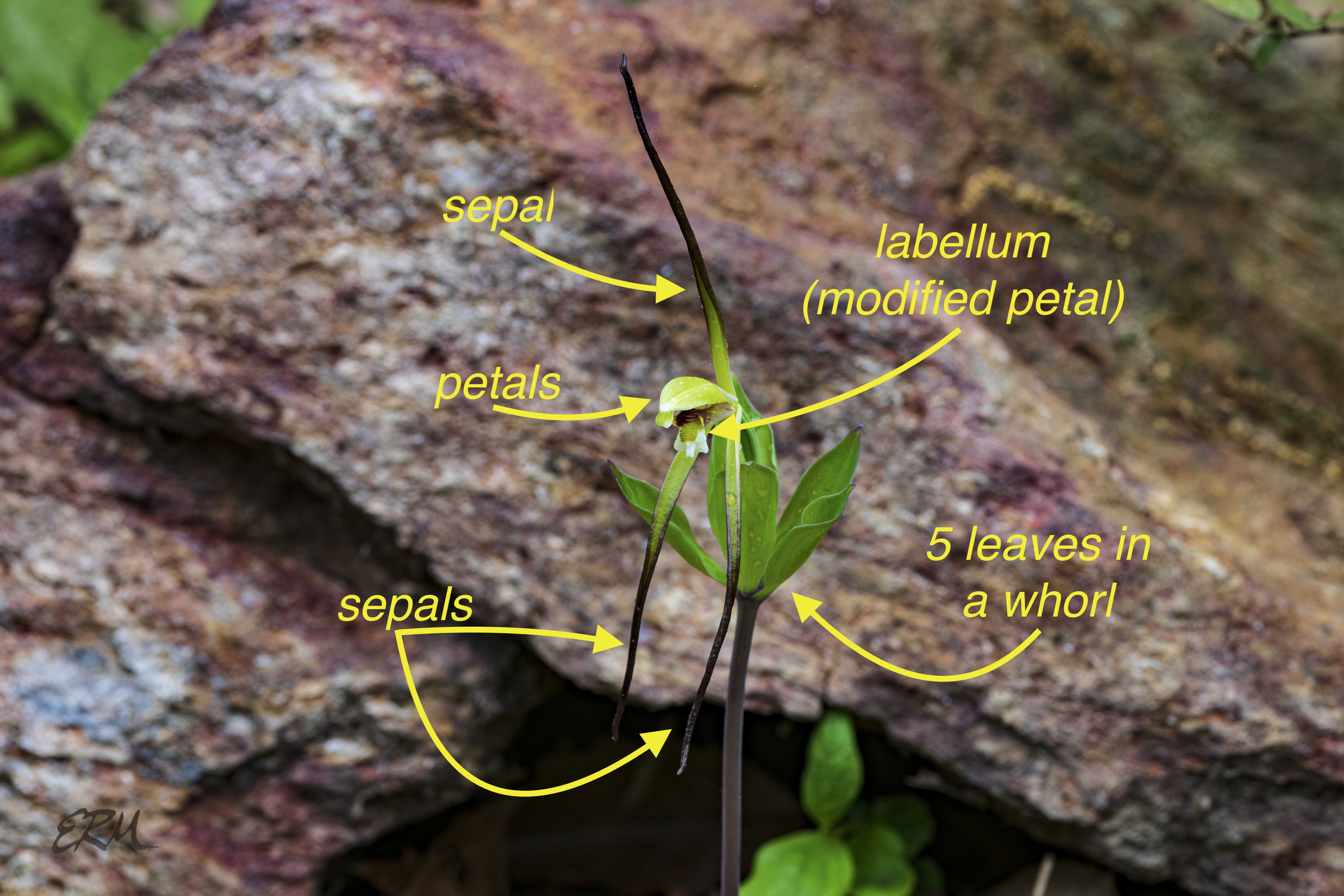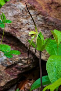 To be fair, a flower like this is hard to spot. Standing only about 8 to 10 inches tall, and colored green, yellow, and brown, it’s well-camouflaged among the leaf litter and other plants.