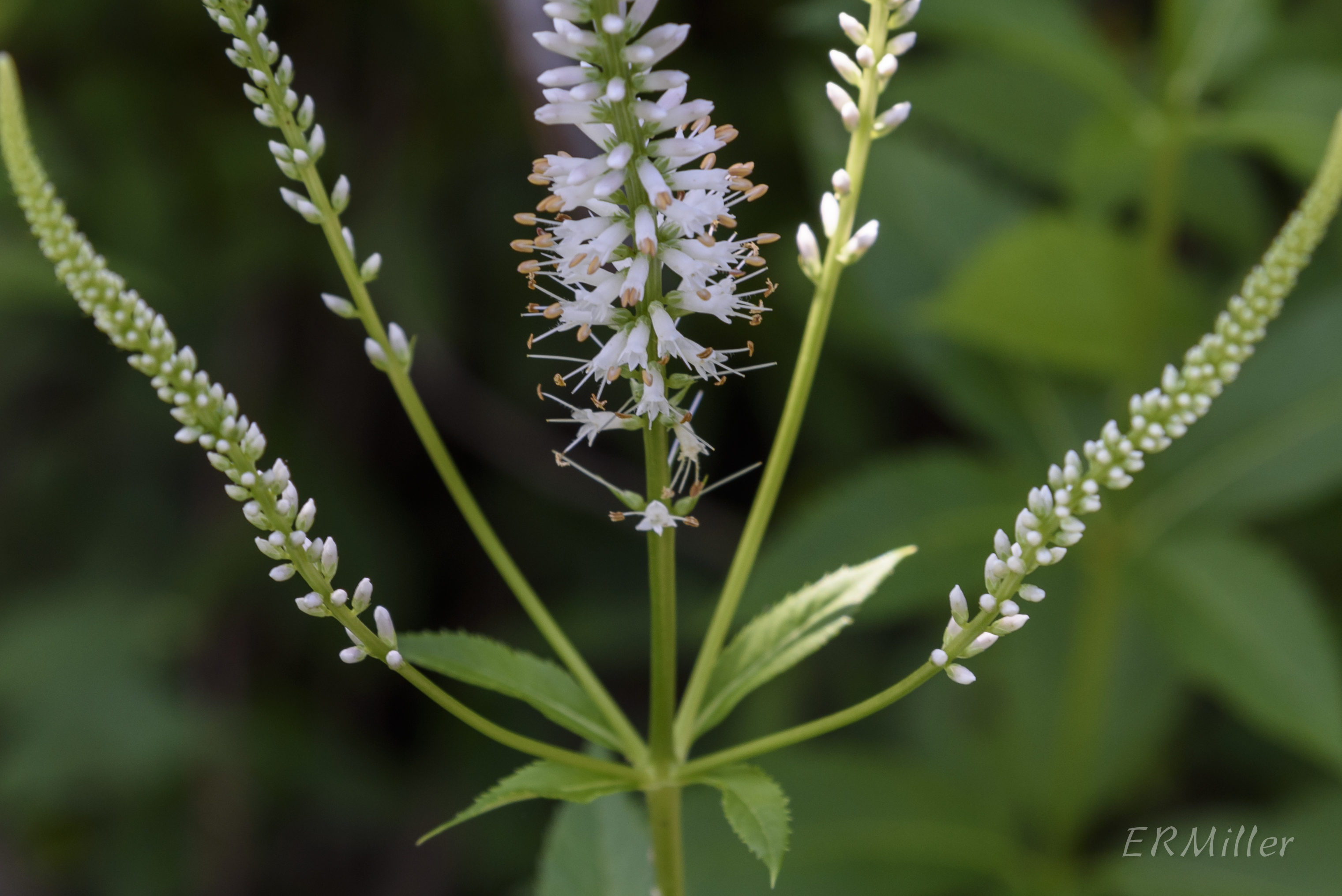 American burnet (Sanguisorba canadensis; Rosaceae) is native to the eastern US and Canada as well as the Pacific Northwest; sadly, it’s threatened or endangered in nine states, including Maryland. It’s an eye-catching plant with its tall, fluffy spikes of flowers. Look for it growing in bogs and other wet areas (including roadsides).
