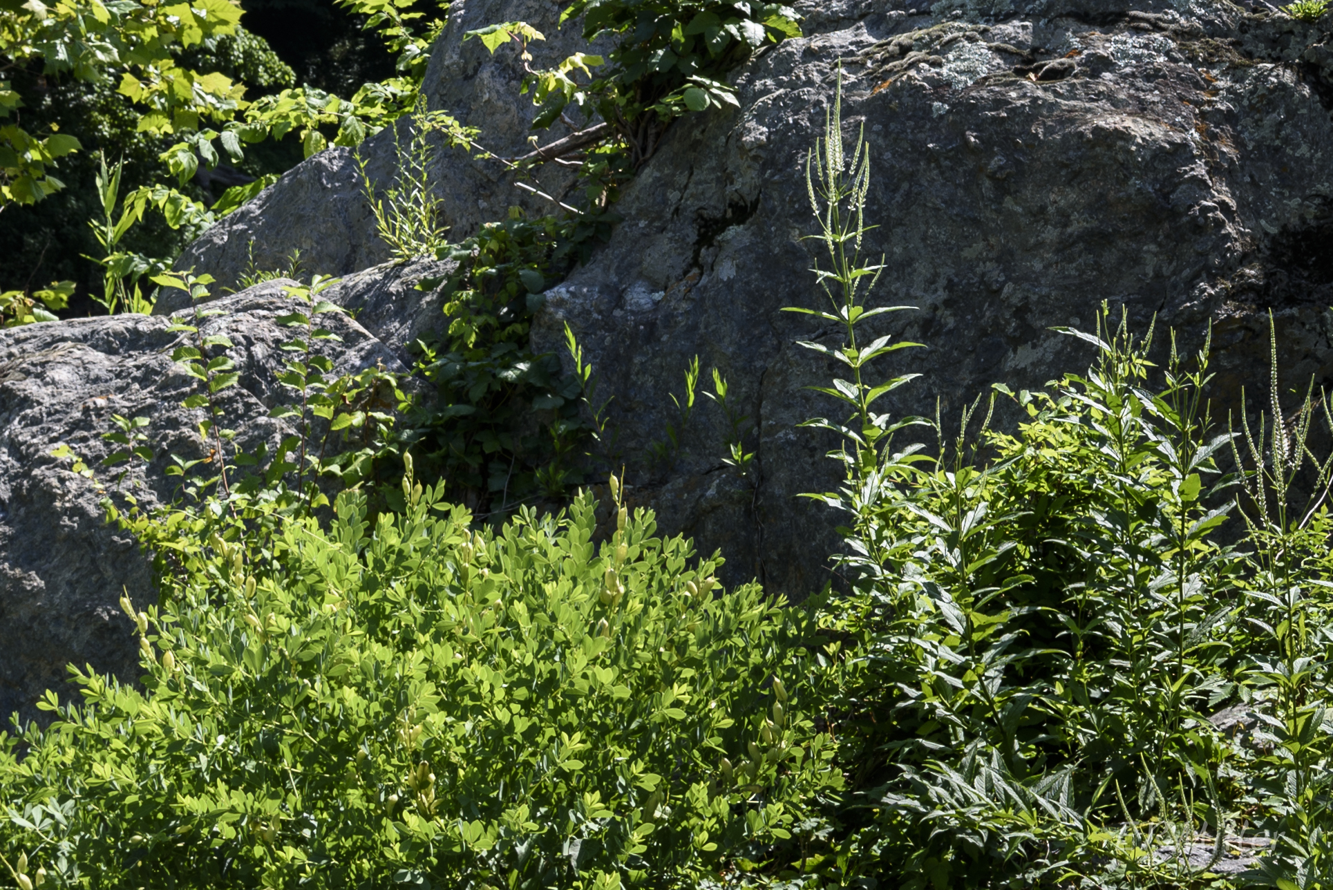 Gall-of-the-earth (Prenanthes trifoliata, formerly Nabalus trifoliatus or N. trifoliolatus; Asteraceae) is found in a variety of dry habitats in eastern Canada, New England, and south through the Appalachians. It’s endangered in Ohio, and though not on the RTE list in Maryland, is only known in Talbot County. Apparently it (and/or other Prenanthes species) was used in folk medicine, and has an exceedingly bitter taste, hence the common name.