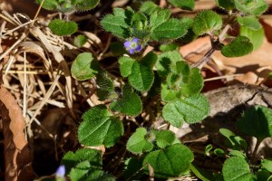 I spotted this Myosotis species (Boraginaceae) and photographed it from a great distance; there was no way to get close enough for a better picture or identification. The forget-me-nots are notoriously difficult to identify, as are their close relatives the phacelias, about which I’ve complained many times in this blog. But that borage blue is a beacon.