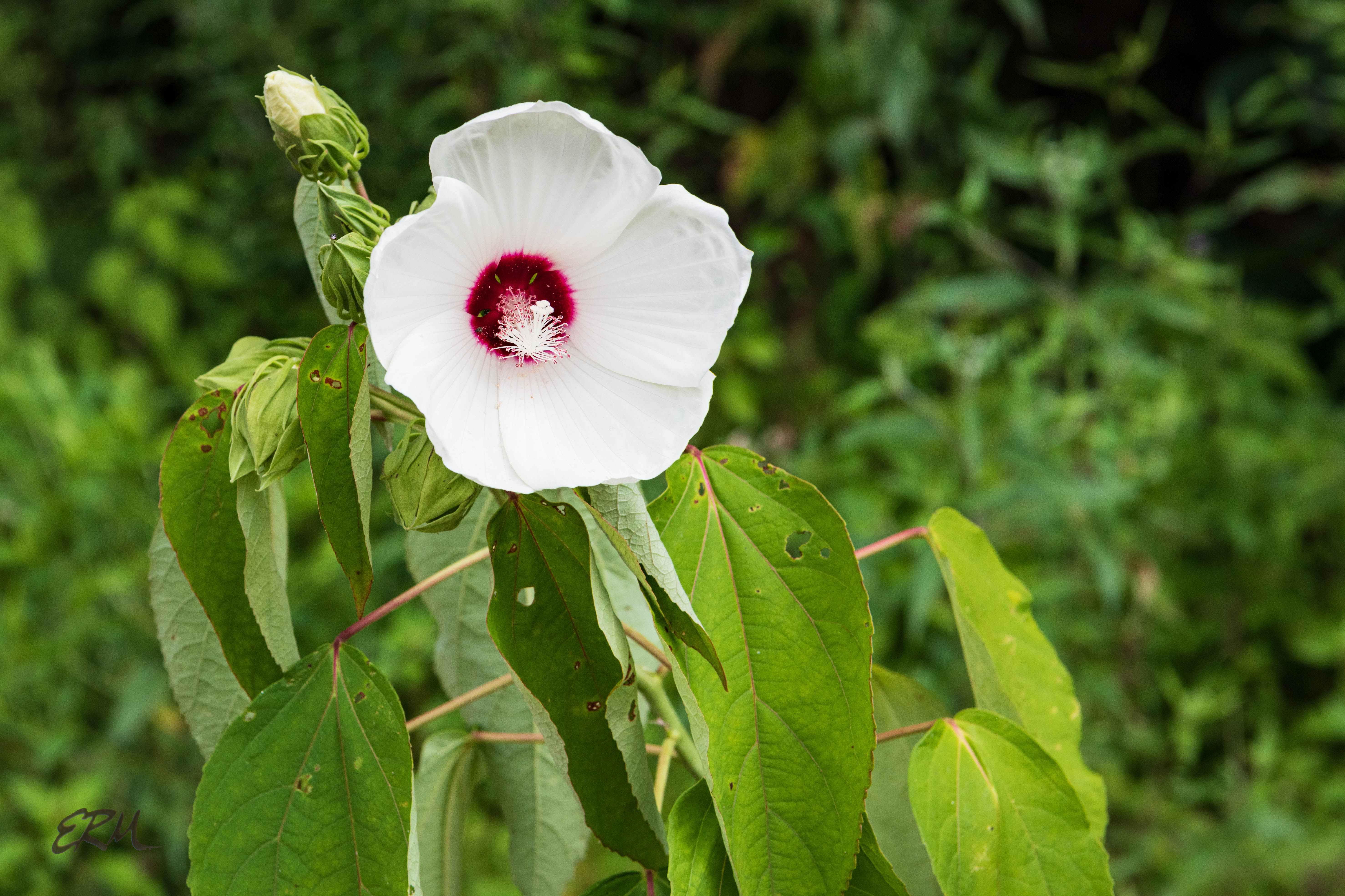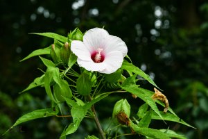Believe it or not, plants not in the aster family are blooming now, too. These two are in the mallow family (Malvaceae). The white one with the simple leaves is Hibiscus moscheutos (swamp rosemallow); the pinkish ones with the deeply lobed leaves are Hibiscus laevis (halberd-leaved rosemallow). Be wary of using color to tell them apart, as colors in both species can vary, especially in different parts of the country. The leaf shape is a more reliable differentiator.
