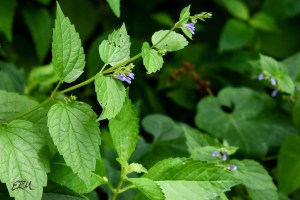 The first was growing among cardinal flowers. I knew right away that it was in the mint family, and it didn’t take long to key out once I got home. Scutellaria lateriflora, aka mad-dog skullcap, is a medium-height forb of wet, sunny areas.