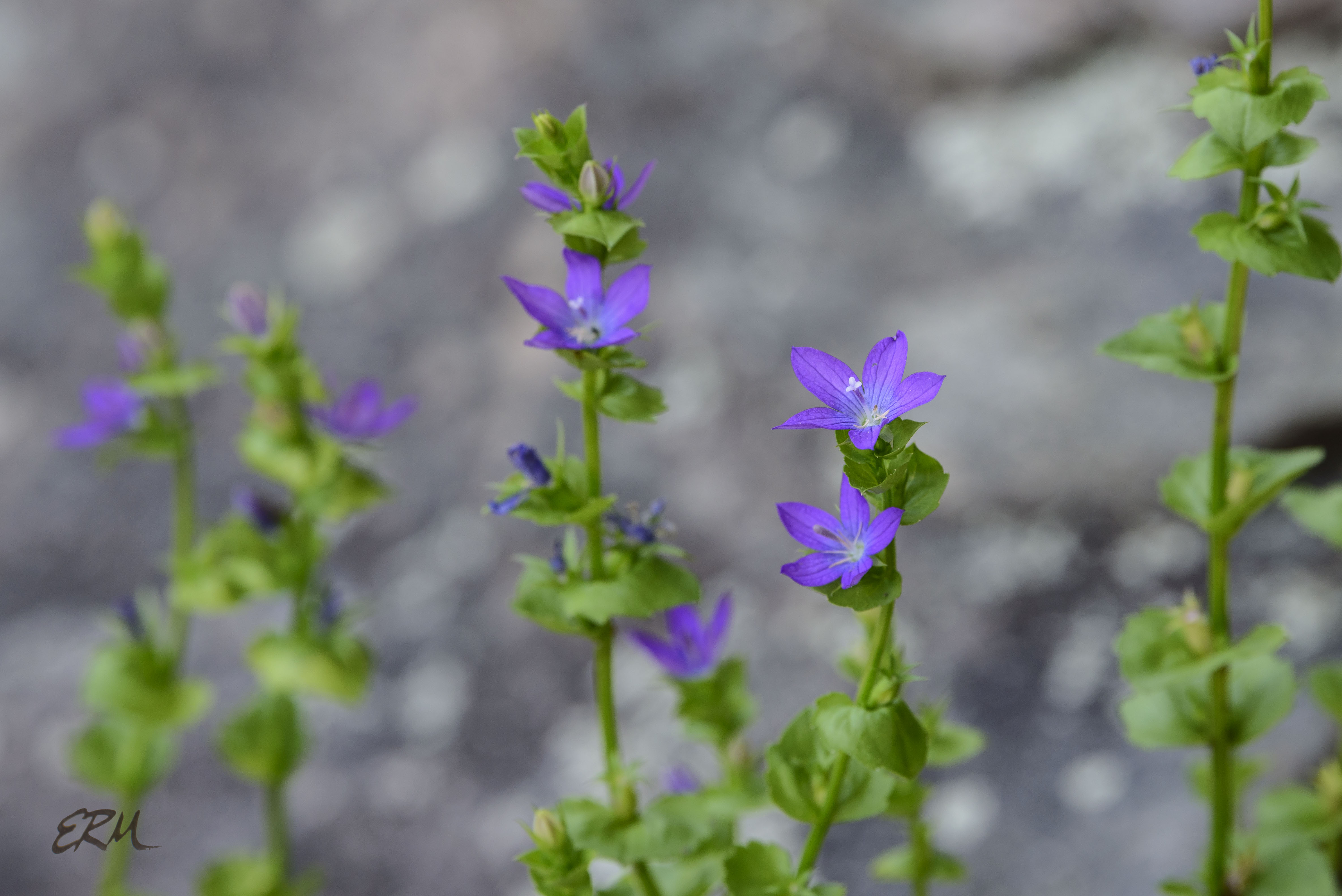 Scattered about in drier areas are clumps of blue-eyed grass (Sisyrinchium angustifolium; Iridaceae).