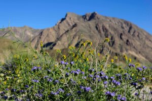 Steve and I were in Joshua Tree National Park recently. There wasn’t a superbloom this year, but there were still a few wildflowers. Mostly they were the Sonoran and Mojave desert plants that I wrote about this time last year, and the year before that.