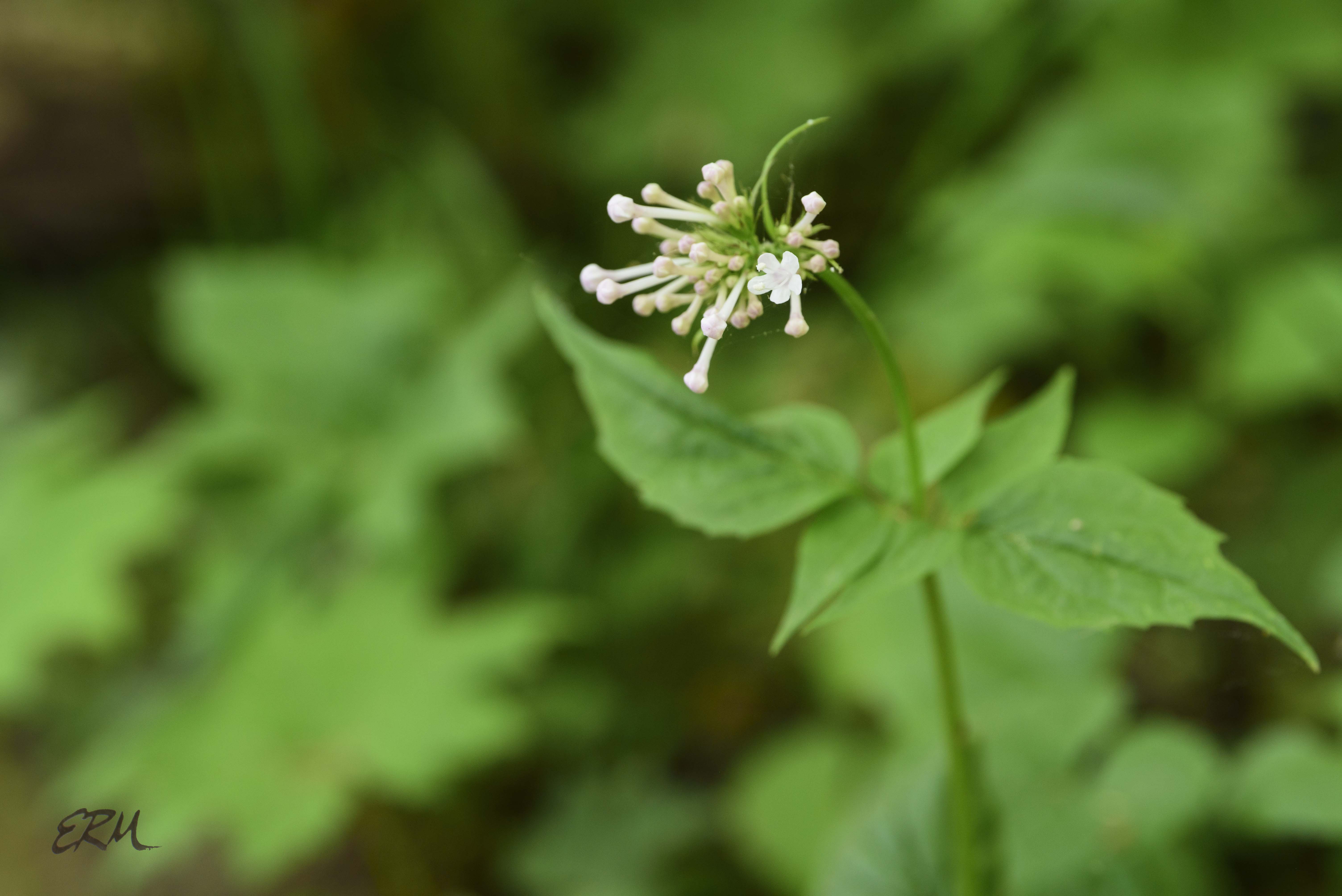Two weeks ago I mentioned long-tube valerian in a post. This plant bedevils me. It grows in the deep, deep shade of the woods, often along the banks of seasonal streams and in other very moist soils. The deep shade makes it difficult to photograph, especially since I need to use a very small aperture to get the entire inflorescence in focus.